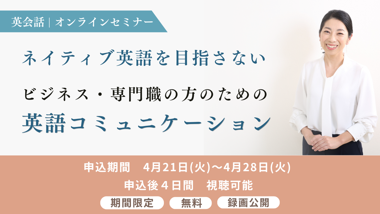 【本日公開】無料録画セミナー 「ネイティブ英語を目指さない ビジネス・専門職の方のための英語コミュニケーション」