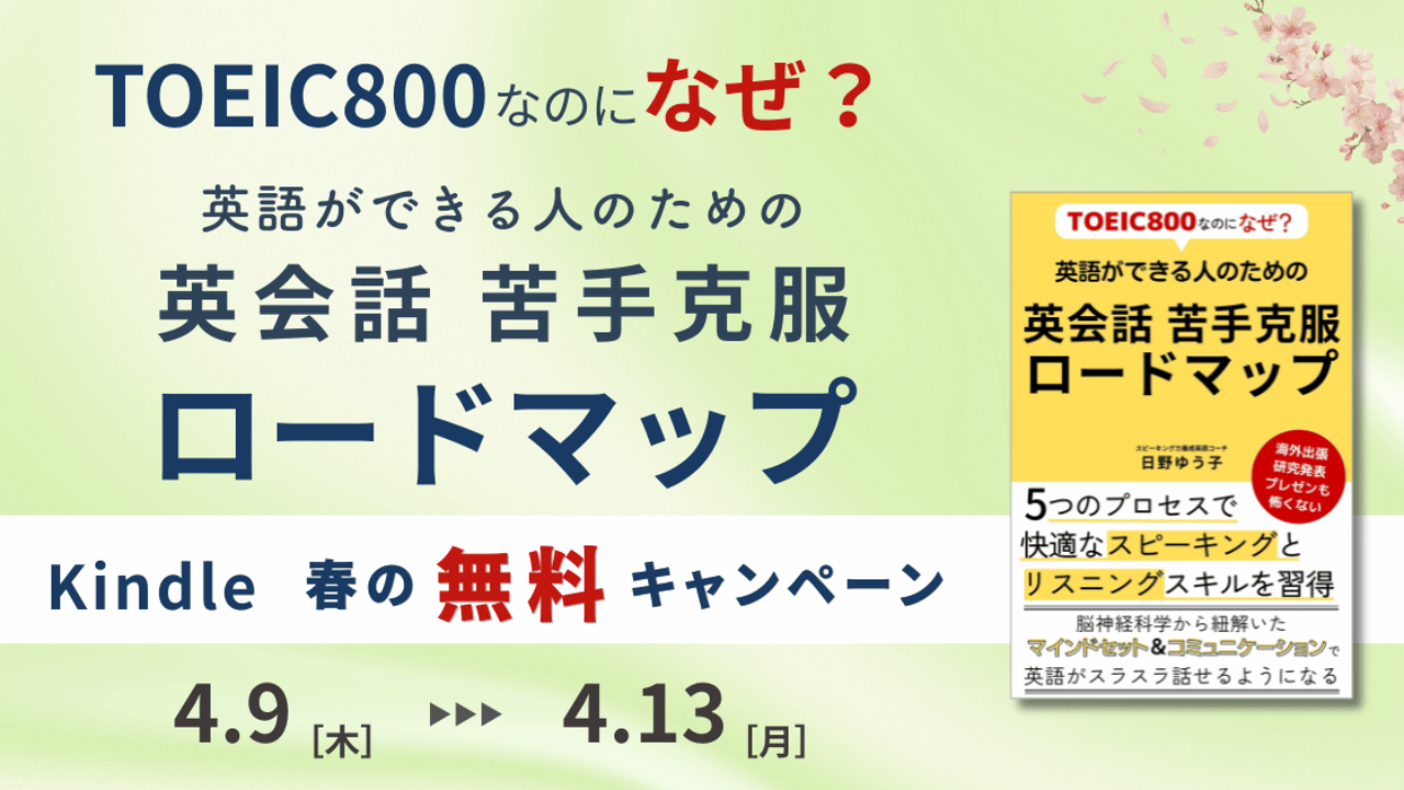 このたび私の電子書籍『TOEIC800なのになぜ?英語ができる人のための英会話苦手克服ロードマップ』の期間限定無料キャンペーンを実施します。