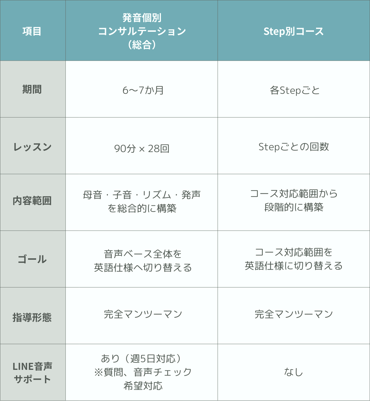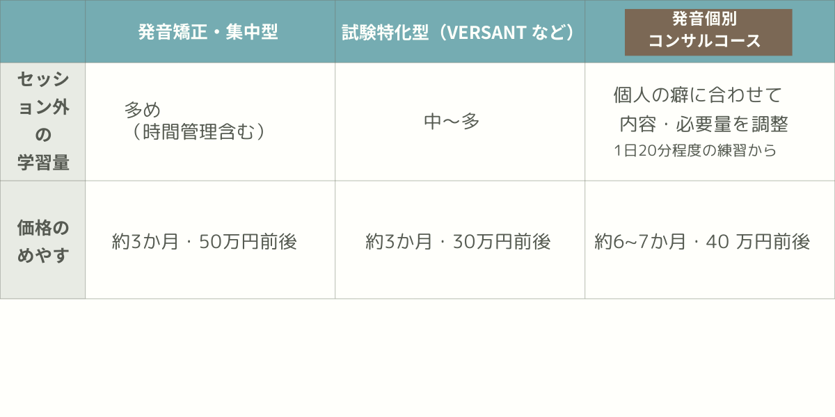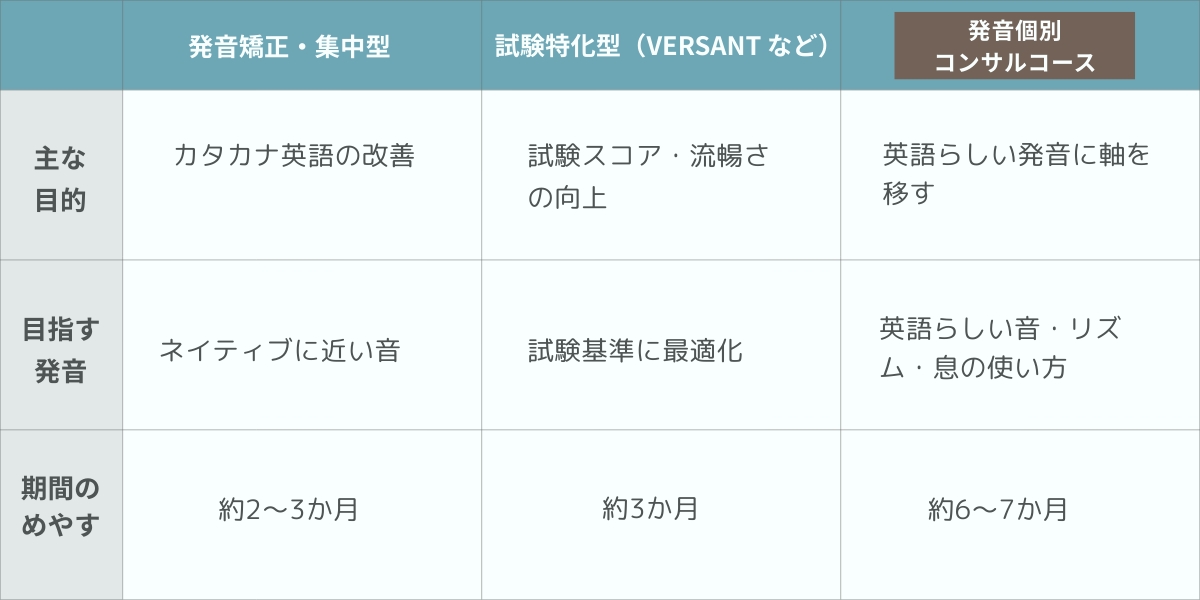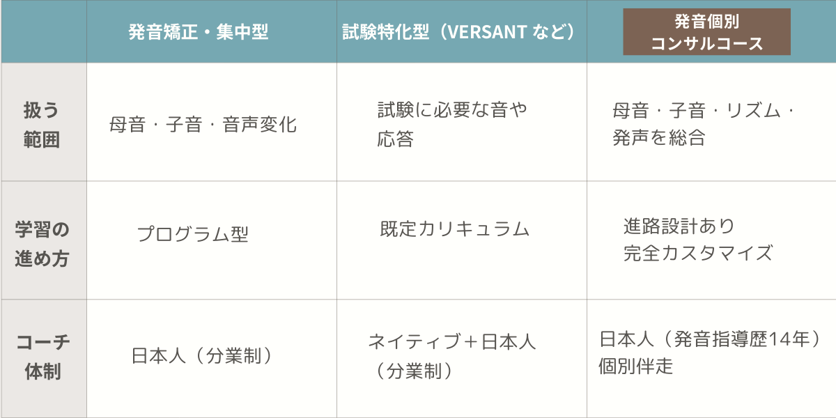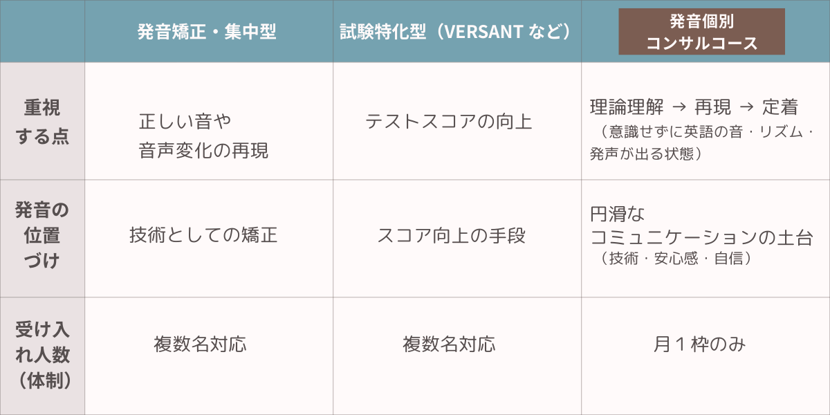 一般的な発音コーチングや発音講座との違いをまとめました。